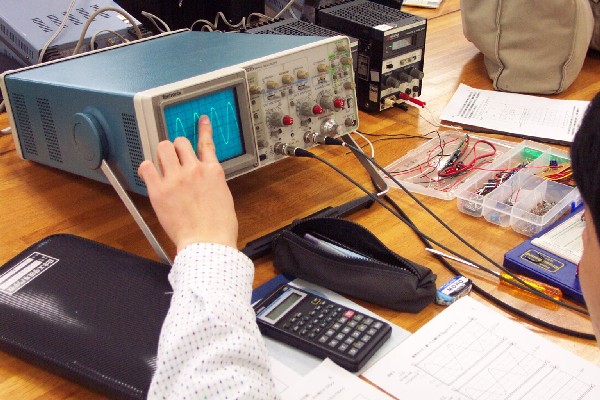 写真は出力波形を観測しているところで、条件を満たしていれば波形をトレースしてレポートにまとめます。
