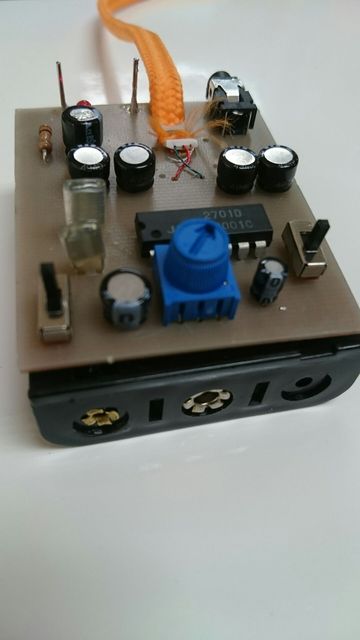 電子系体験入学の電子工作メニューにサラウンドプロセッサーを準備中です体験入学で製作したミニアンプに取り付けることにより疑似的にコンサートホールのような音を再現します
