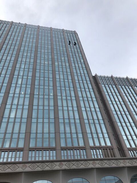 先週は、重機を使っての窓拭き。