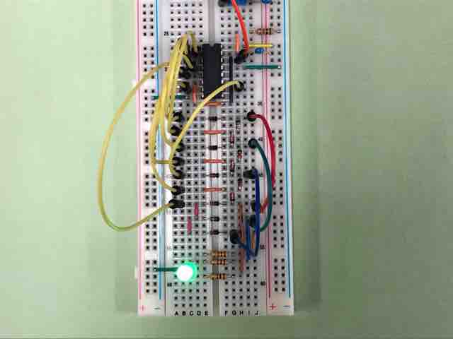 先週、使用したTC4017を使って、ICのパワーオンリセット回路やCRによる遅延回路を実習。