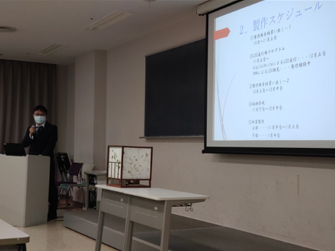 2年生はスーツを着用し、先生方と1年生の前で、研究・製作してきた成果を発表します。1年生からは沢山の質問があり、とても盛り上がりました。