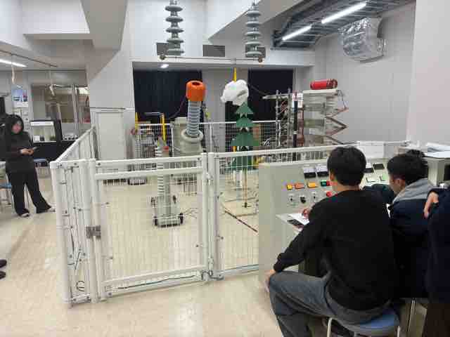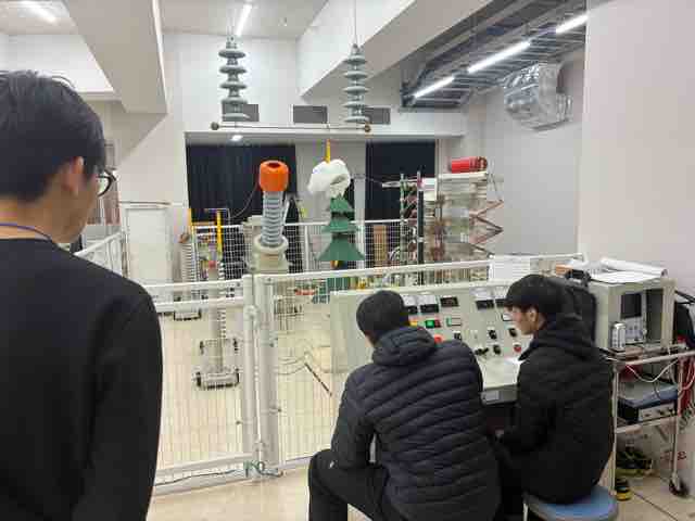 実習は2日間に渡り、1日目が電気工事実習、2日目に高電圧実習を行いました。